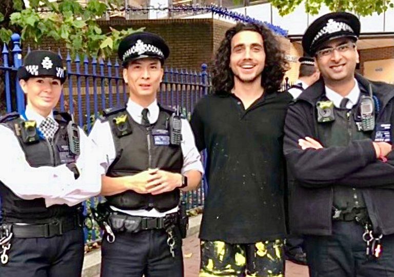 Omero Tarquini (full name Omero Benvolio Whiteleg Amor Tarquini Esq) spotted enjoying an uplifting morning walk with London’s finest. It might well have been just another Friday commute a stone’s throw from Victoria Station but why not have a beaming smile on your face?